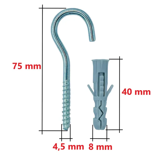 Kołki rozporowe Z HAKIEM PÓŁPEŁNYM 8x75 mm Wkręt-met Klimas WX ocynk 100szt