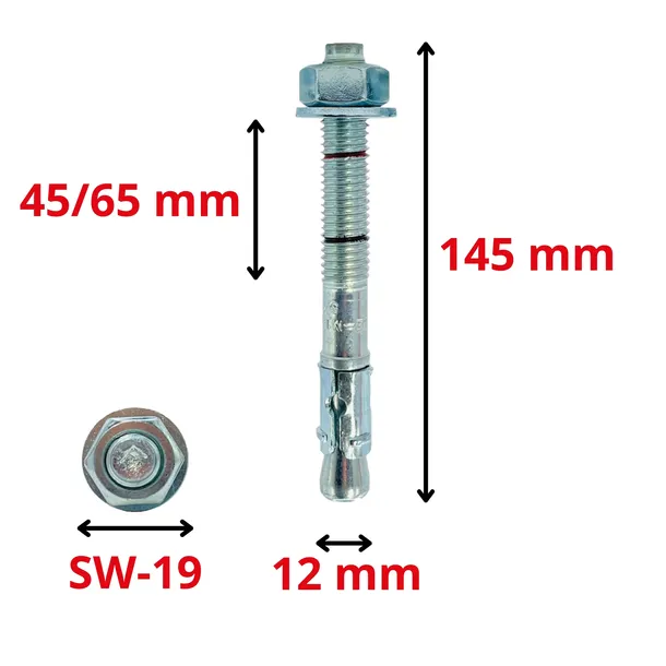 Kotwa stalowa wbijana DO BETONU M12x145 mechaniczna ekspresowa LE-ZN 25 szt